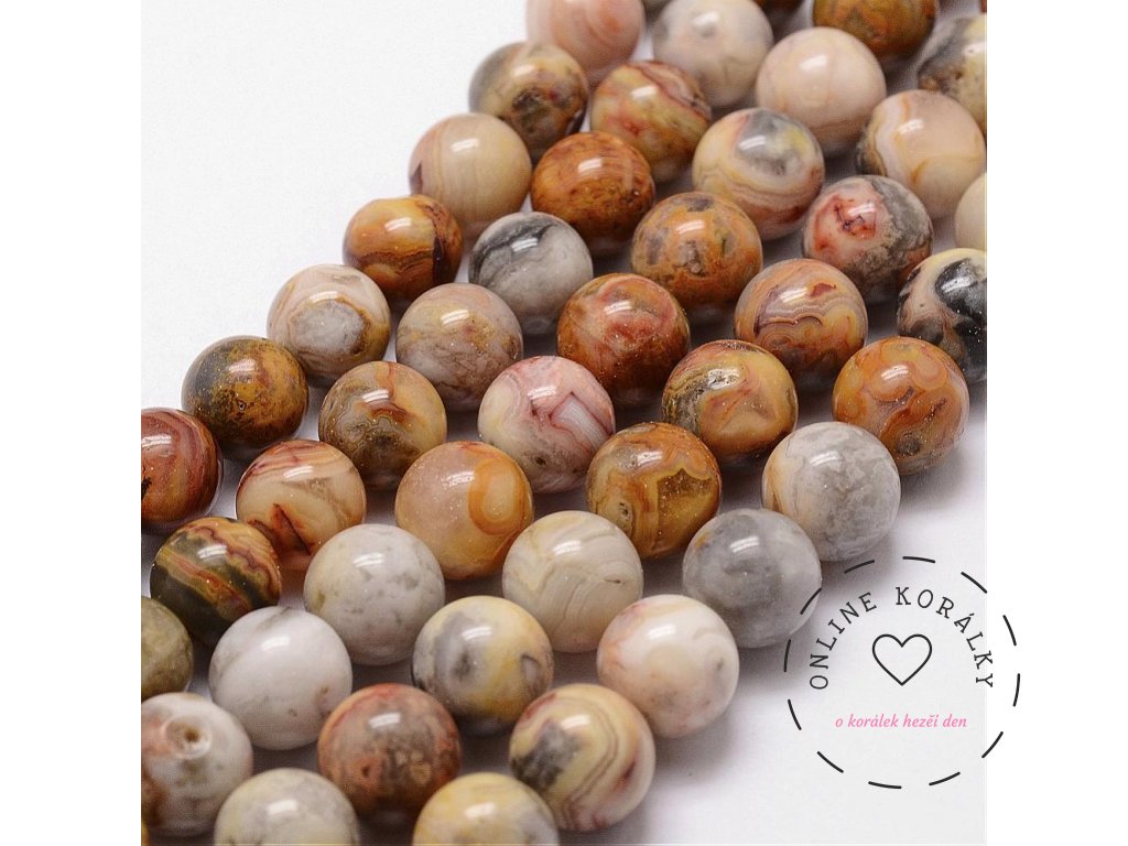 Achát krajkový 8 mm (návlek 46 - 48 korálků)