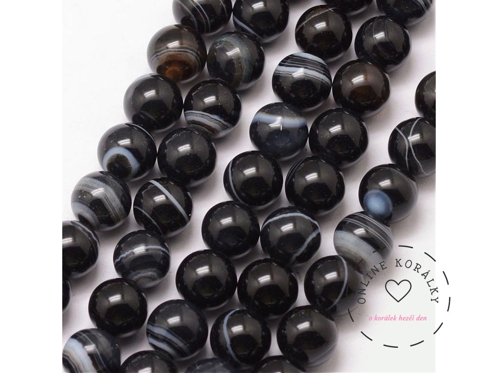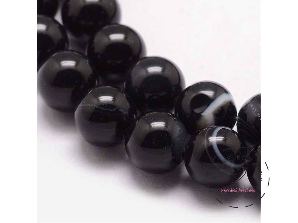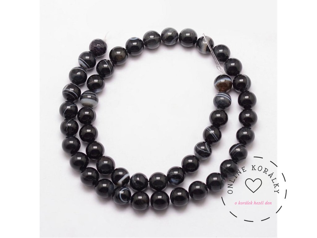 Achát černý s proužky, kvalita A, 8 mm (návlek 46 - 48 korálků)
