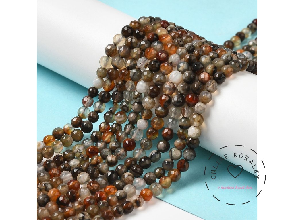 Achát fasetovaný 4 mm (návlek 85 - 90 korálků)