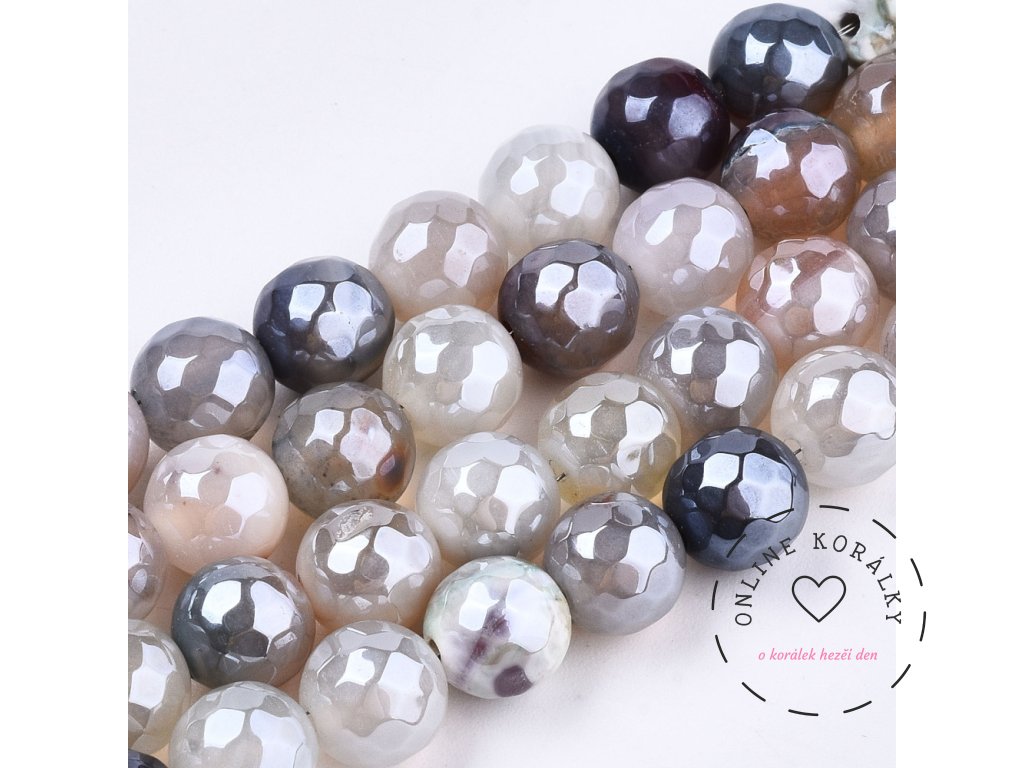 Achát fasetovaný 8 mm (návlek 46 - 48 korálků)