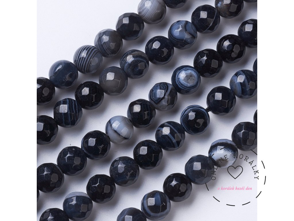 Achát fasetovaný černý s proužky 8 mm (návlek 46 -48 korálků)