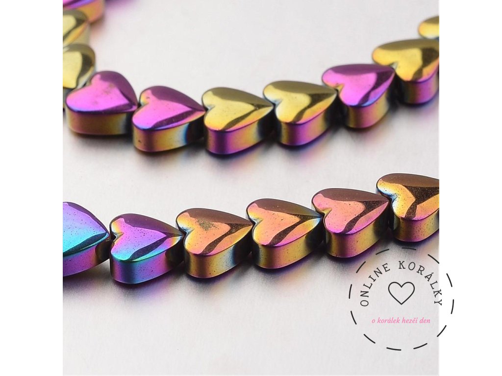 Hematit duhová srdíčka 6x3 mm (návlek 70 - 72 korálků)