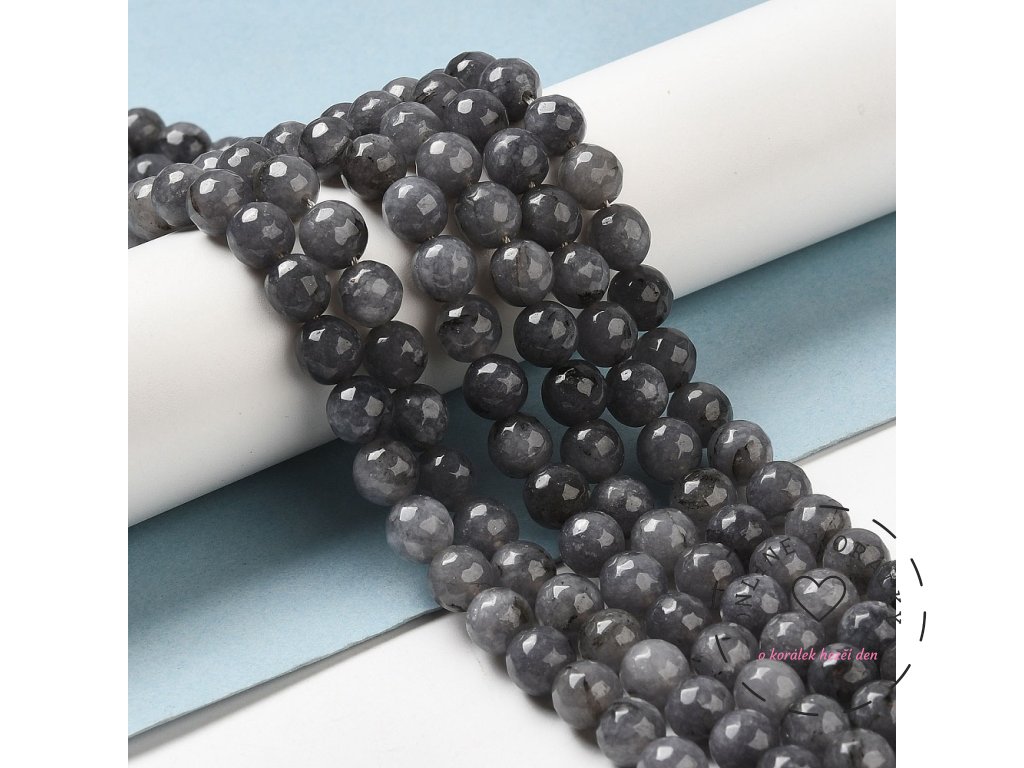 Jadeit šedý fasetovaný 8 mm (návlek 48 - 50 korálků)