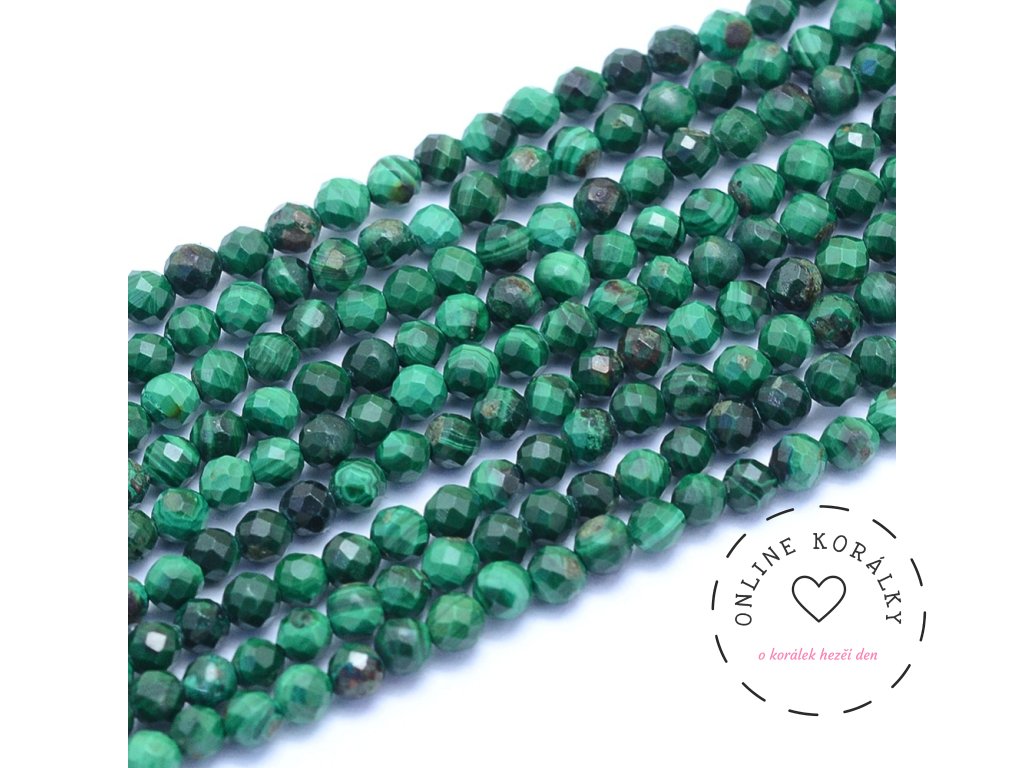 Malachit fasetovaný 3 mm (návlek 38 cm)