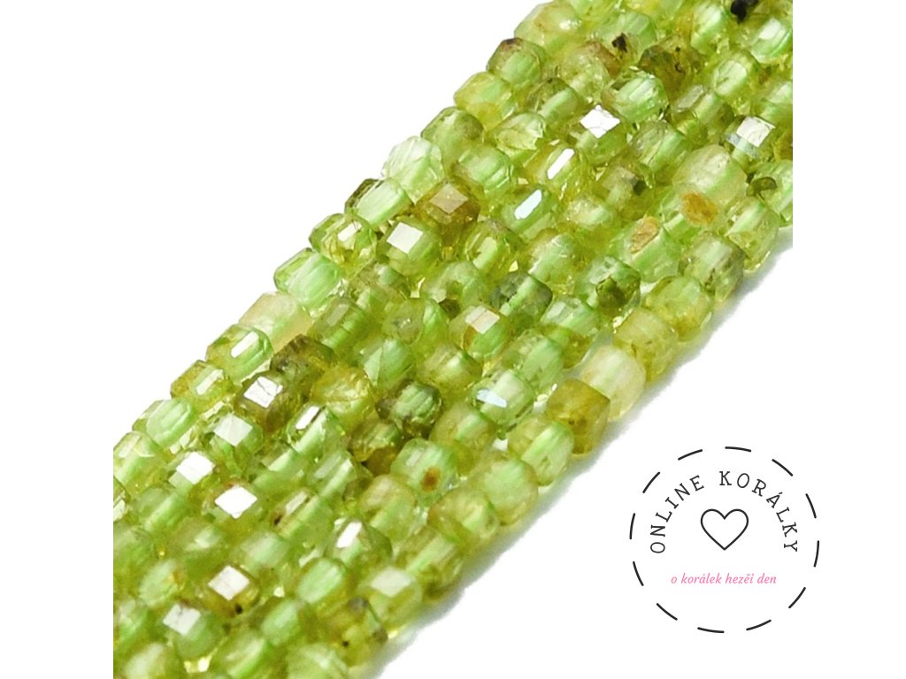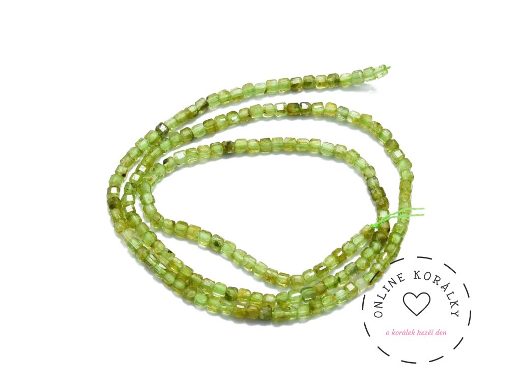 Peridot, broušené čtverečky cca 2 x 2 mm ( návlek 38 cm )