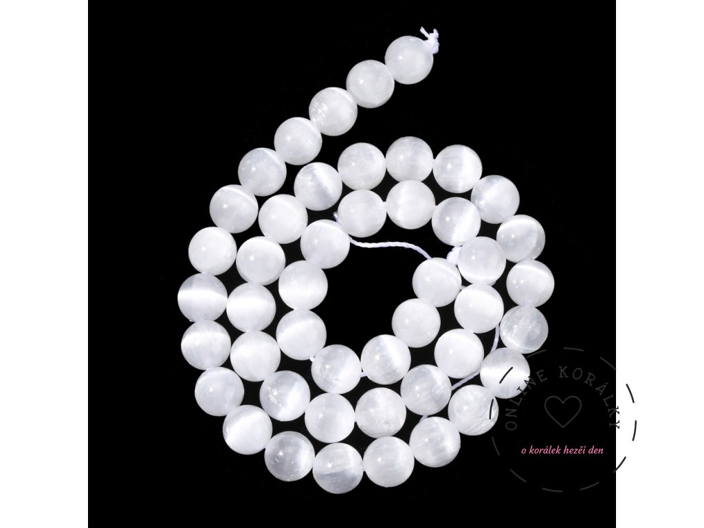Selenit bílý, kvalita AAA, 8 mm (návlek 45 - 47 korálků)