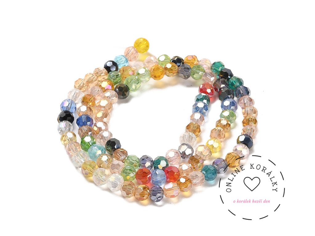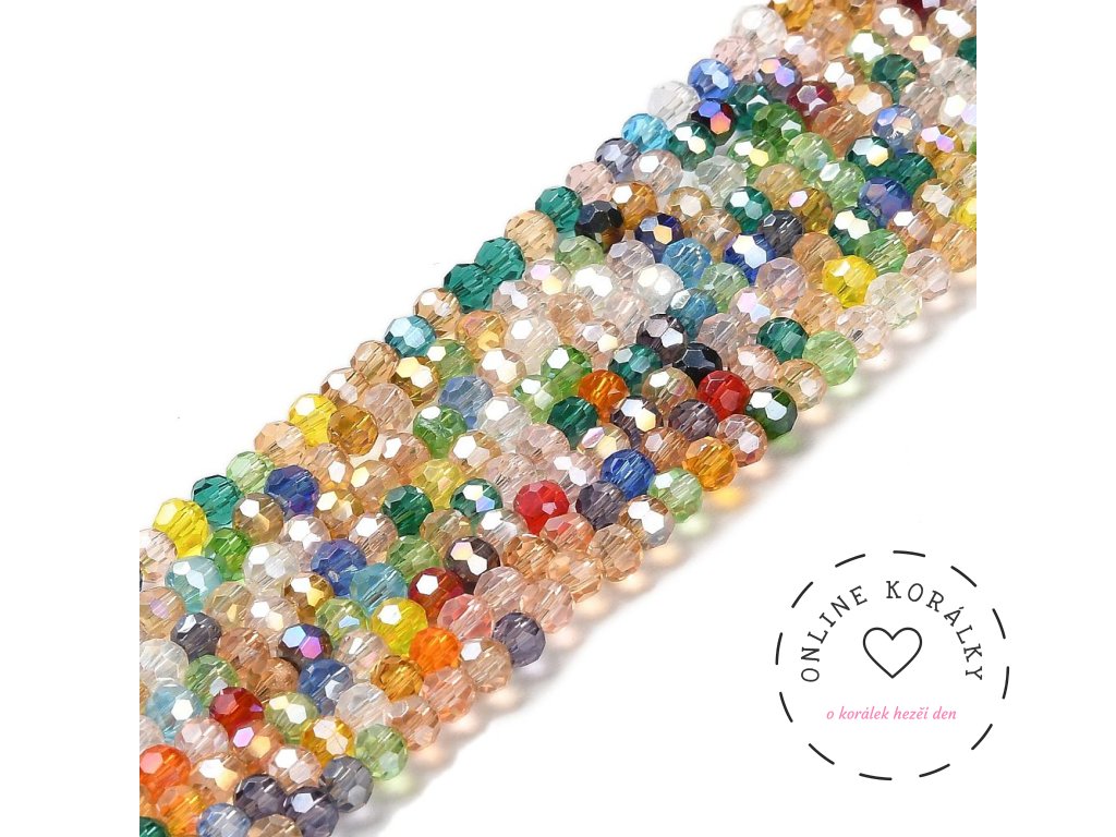 Skleněné korálky fasetované 4.5 x 4 mm (návlek 85 - 90 korálků, délka 33 cm)