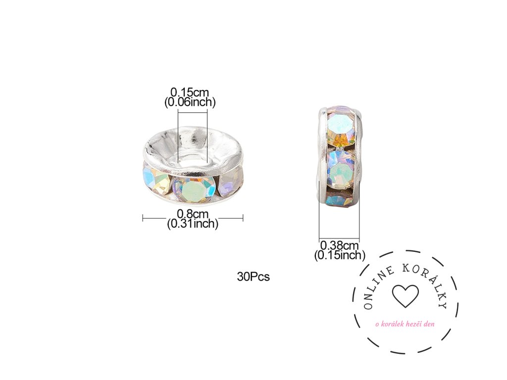 Štrasové 8 mm AB rondelky (29 - 30 kusů)