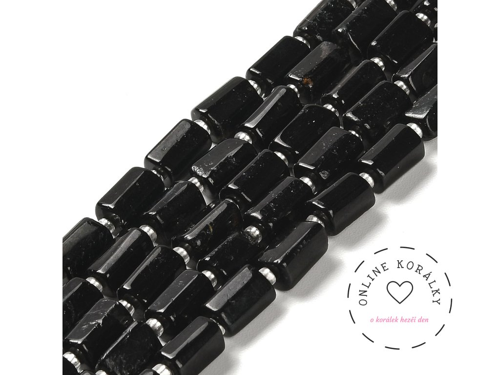 Turmalín válečky 7,5~10 x 5.5~6.5 mm, půlšňůra 18-19 cm