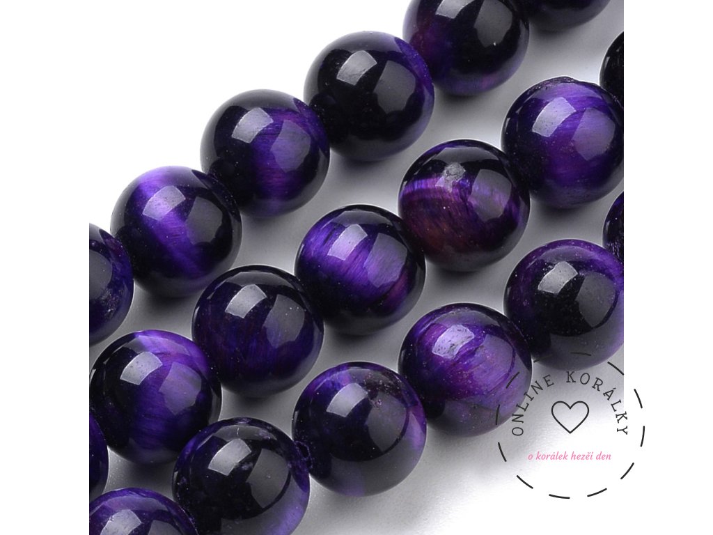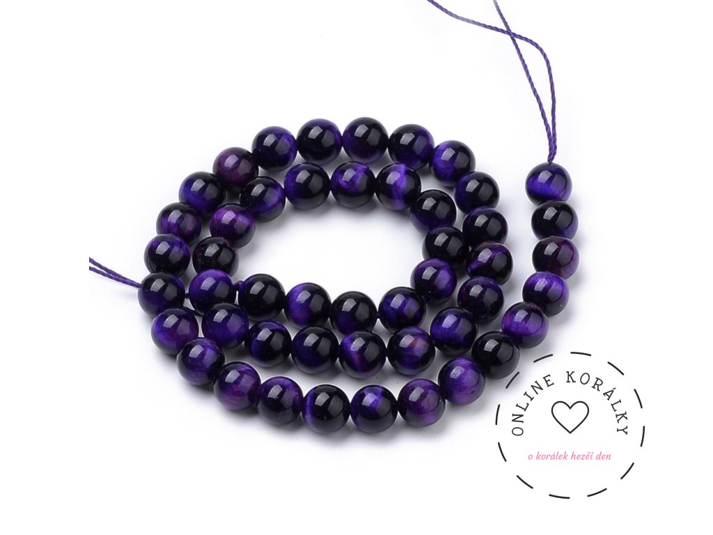 Tygří oko fialové 8 mm (návlek 46 - 48 korálků)