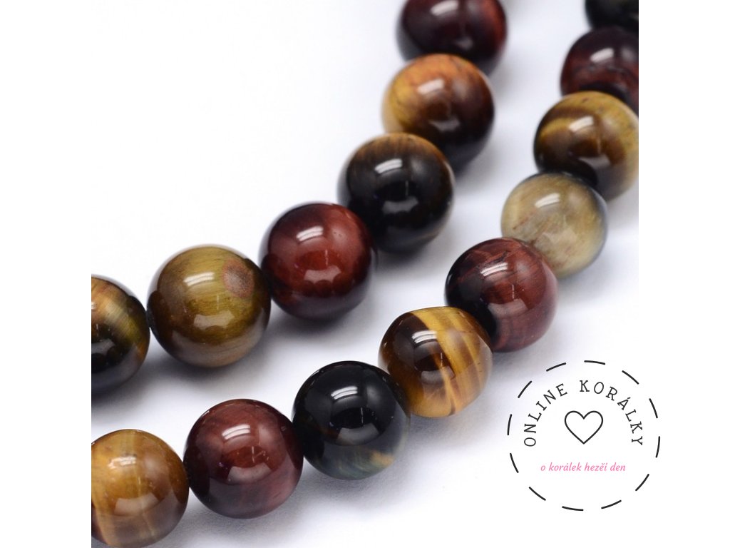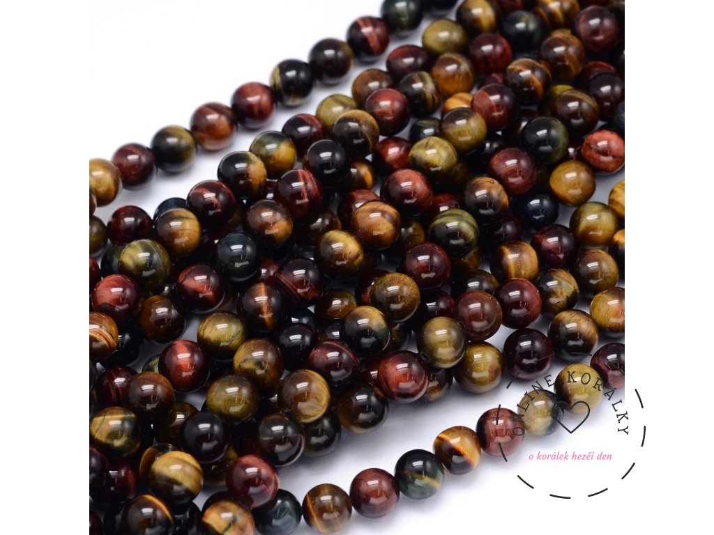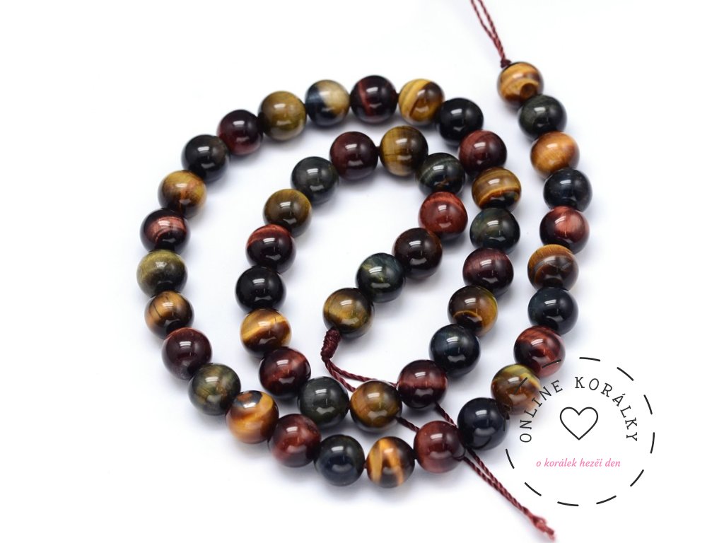 Tygří oko mix barevné 8 mm (návlek 46 - 48 korálků)