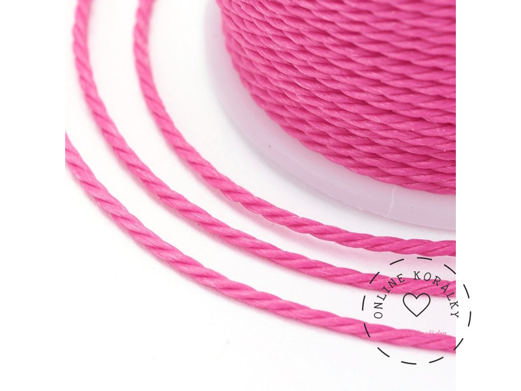 Voskovaná tchajwanská polyesterová šňůrka Hot Pink - Ø 1 mm , návin cca. 11 m